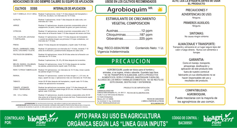 AGROBIOQUIM Regula el crecimiento balanceado de las plantas, estimulando la elongación, división y expansión celular, resultando en una mayor cantidad de masa celular, mayores frutos, hojas más grandes, tallos más anchos, etc.